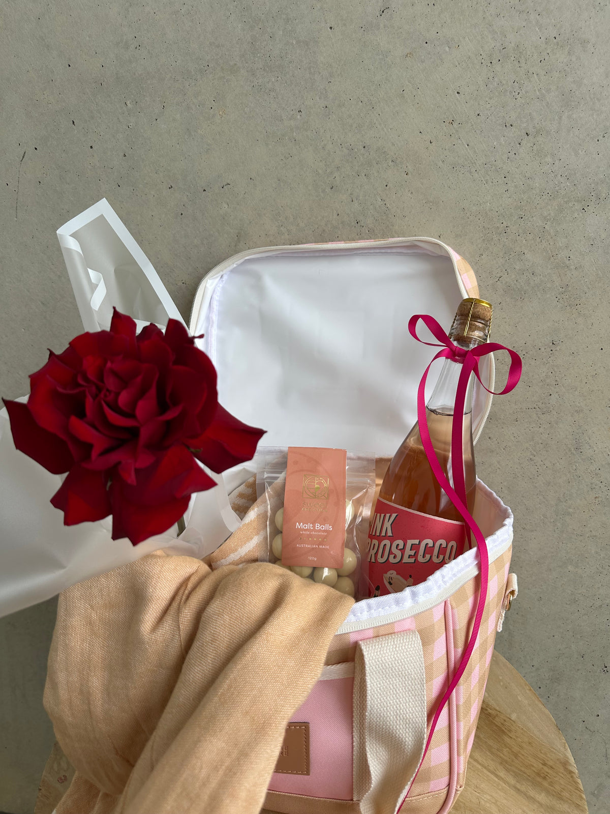 Unit price perTreat your Valentine to a dreamy picnic-inspired gift featuring Pink Prosecco, luxurious Turkish towel, artisan chocolates and a premium single red rose — beautifully packed inside a stylish insulated tote. Perfect for spontaneous dates, sunset picnics and leisurely weekends spent together.